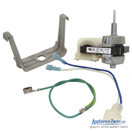 Replacement evaporator fan motor used for some Amana, Jenn-Air, Kenmore, Maytag, and Whirlpool refrigerator models.
