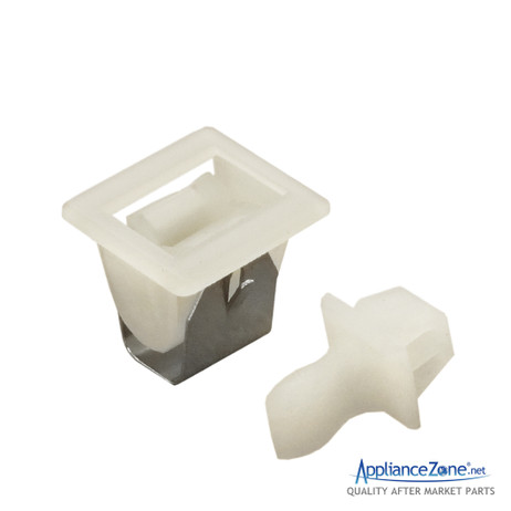 Replacement door latch and strike kit used for some Amana, Jenn-Air, and Maytag dryer models.