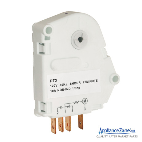 Replacement defrost timer used for some Crosley, Estate, Inglis, Kenmore, KitchenAid, Roper, and Whirlpool refrigerator models.