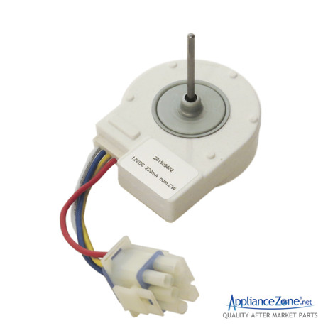 Replacement freezer evaporator fan motor used for some Crosley, Electrolux, Frigidaire, and Kenmore refrigerator models.