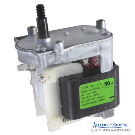 Replacement ice dispenser bin auger motor used for some Crosley, Electrolux, Frigidaire, Kenmore, and White-Westinghouse refrigerator models.