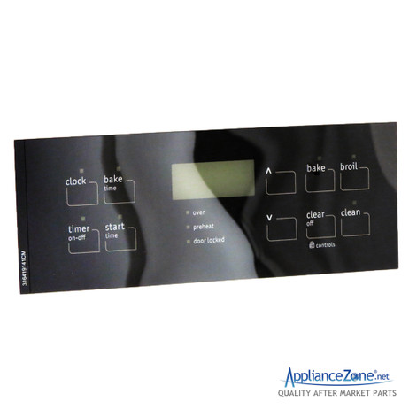 Replacement control overlay used for some Crosley, Frigidaire, Kelvinator, Kenmore, and Tappan range models.
