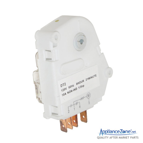Replacement defrost timer used for some Admiral, Amana, Crosley, GE, Hoover, Jenn-Air, Magic Chef, Maytag, Norge, and Whirlpool refrigerator models.