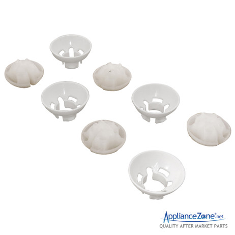 Replacement suspension rod cup and ball bushings set used for some Amana, Crosley, Inglis, Kenmore, Maytag, Roper, and Whirlpool washer models.