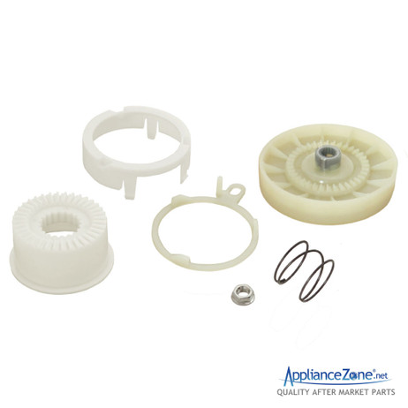 - Includes (1) Drive Pulley, (1) Basket Drive Gear, (1) Splutch Housing, (1) Cam Ring, (1) Spring, (1) Nut.
