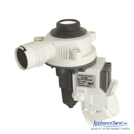 Replacement drain pump used for some Amana, Crosley, Inglis, Kenmore, Maytag, Roper, and Whirlpool washer models.