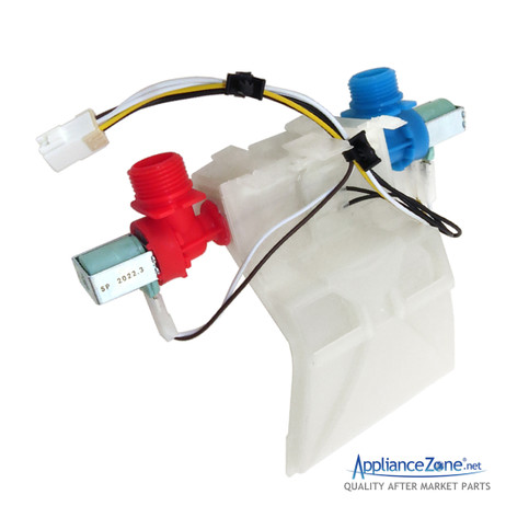 Replacement water inlet valve used in some Admiral, Amana, Crosley, Estate, Inglis, Kenmore, Maytag, Roper, and Whirlpool washer models.