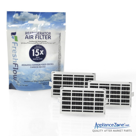Air filter used on various Amana, Ikea, Jenn-Air, Kenmore, KitchenAid, Maytag, and Whirlpool refrigerators.
