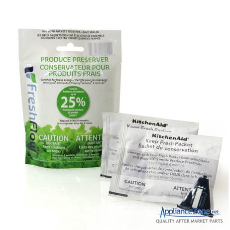 Product preserver used on various Amana, Ikea, Jenn-Air, Kenmore, KitchenAid, Maytag, and Whirlpool refrigerators.